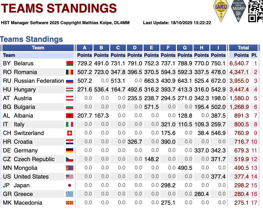 Si è appena concluso il 21° Campionato HST dal 15 al 19 ottobre in Montenegro. Come rappresentante ARI presso il Gruppo di Lavoro HST della IARU avrei dovuto accompagnare la squadra in Montenegro. Purtroppo um esame sanitario non chiaro mi ha costretto a rinunciare alla trasferta. Sono stati effettuati altri al due Campionati Mondiali in Montenegro, sarebbe stata la mia terza partecipazione . Le due volte precedenti sono state a Bar nel 2014 https://www.fabinet.it/8_hst_championship_r1_2014_bar.htm e sempre a Herceg Novi nel 2016 https://www.italiantelegraphyclub.net/13_hst_championship.htm . Ho quindi provveduto a delegare il mio carissimo amico dr Sandro Baresi IW2EAB a rappresentarmi. Il gruppo era composto da sette persone, cinque concorrenti e due accompagnatori. La mancanza nella nostra squadra di concorrenti giovani non aiuta nella classifica finale. Abbiamo gareggiato in due sole categorie su sette previste dal Campionato. Come al solito i concorrenti dell'est hanno avuto la meglio, fatta eccezione per il concorrente Svizzero Fritz HB9CSA che ha portato a casa tre medaglie, qui sotto con una concorrente dell'est.
